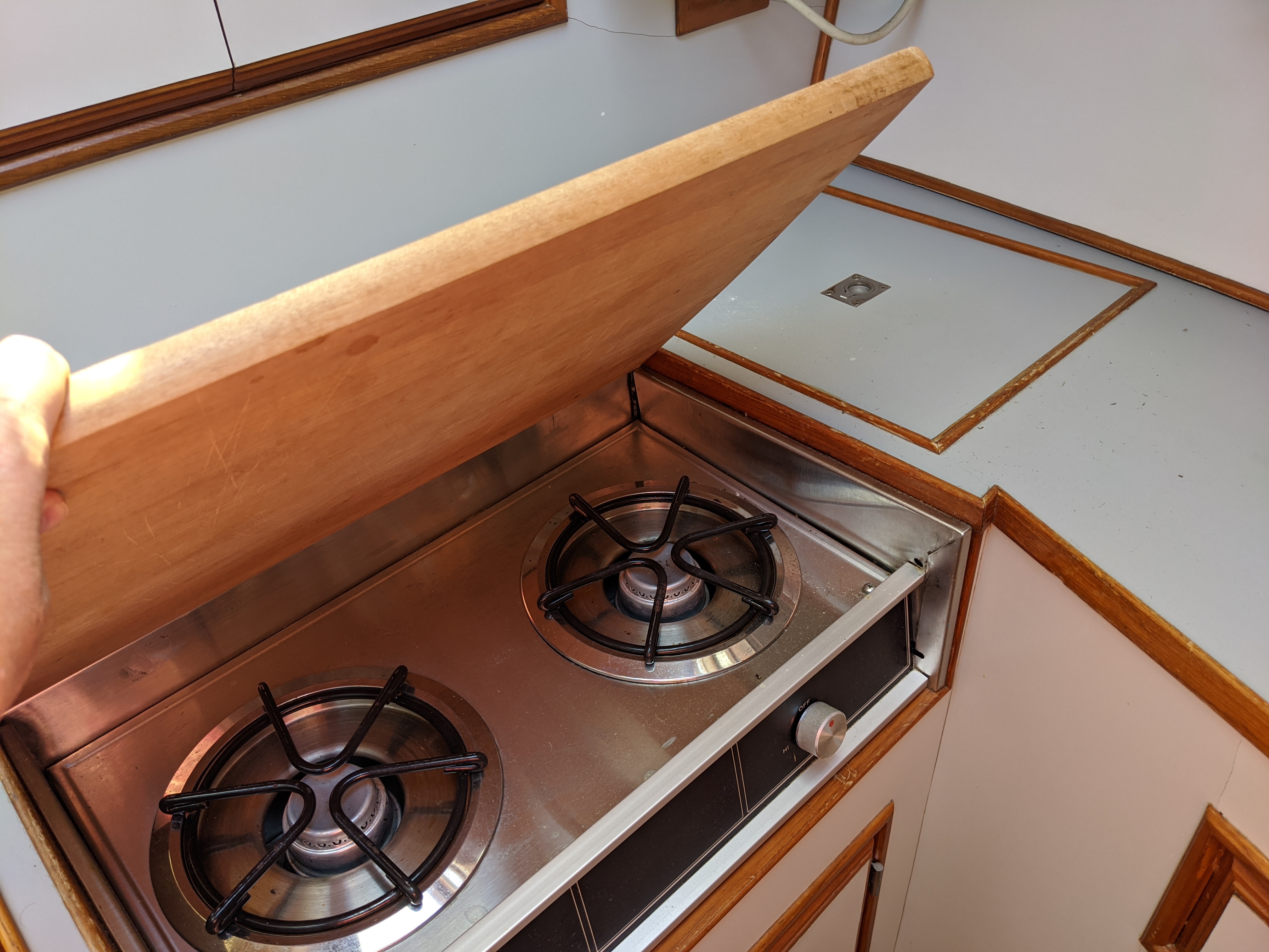 First of all there is the pure uncovered grp-surface. You may not even be able to stand up all of the way if your galley is really small. Scout 350 LXF 2.